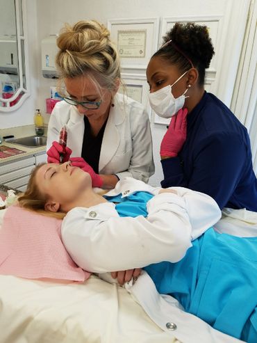 On your first day of training come mentally prepared to learn and take notes. We will collect your homework, then begin covering a variety of industry information. In addition, we will go over what you need to know in order to begin your business, ways to market your business and give you a complete list of where to purchase the supplies and equipment you will need to launch your career. We will also teach you how to consult with clients on color and design and help you learn how to answer your clients' questions. On day two, you will begin to apply all the theory we learned on day one to real life. You will set up, break down, and disinfect the procedure room. We will use a step-by-step approach to show you exactly how to apply new eyebrows, eyeliner and lip liner. These are my specific techniques I have developed over the last 24 years. You will learn my M- tapTechnique, which will enable you to do precise and beautiful work. Our Anesthetic Openings technique will help your client feel comfortable and as pain-free as possible during the procedure, in fact, many of our clients fall asleep during the procedure because they are so comfortable. You will also learn hands-on stretching positions for the eyes, lips, and brows, so you understand how to immobilize the muscles of the face and what angle to hold your instrument correctly so that each procedures go perfectly.